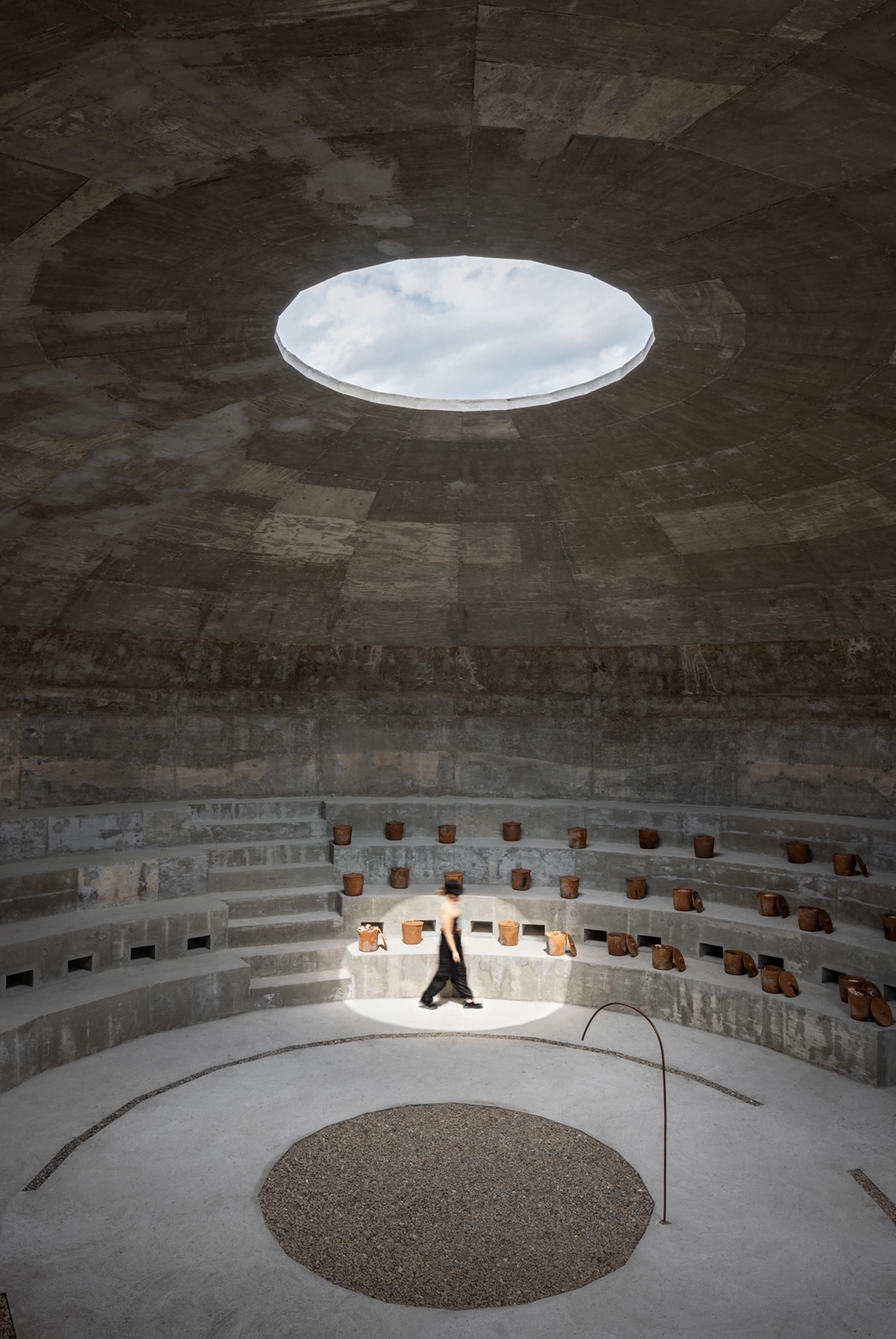 SL: The circular geometry and stepped interior suggest a shared orientation, almost ritualistic. What kinds of collective behaviors did you imagine the space might hold?